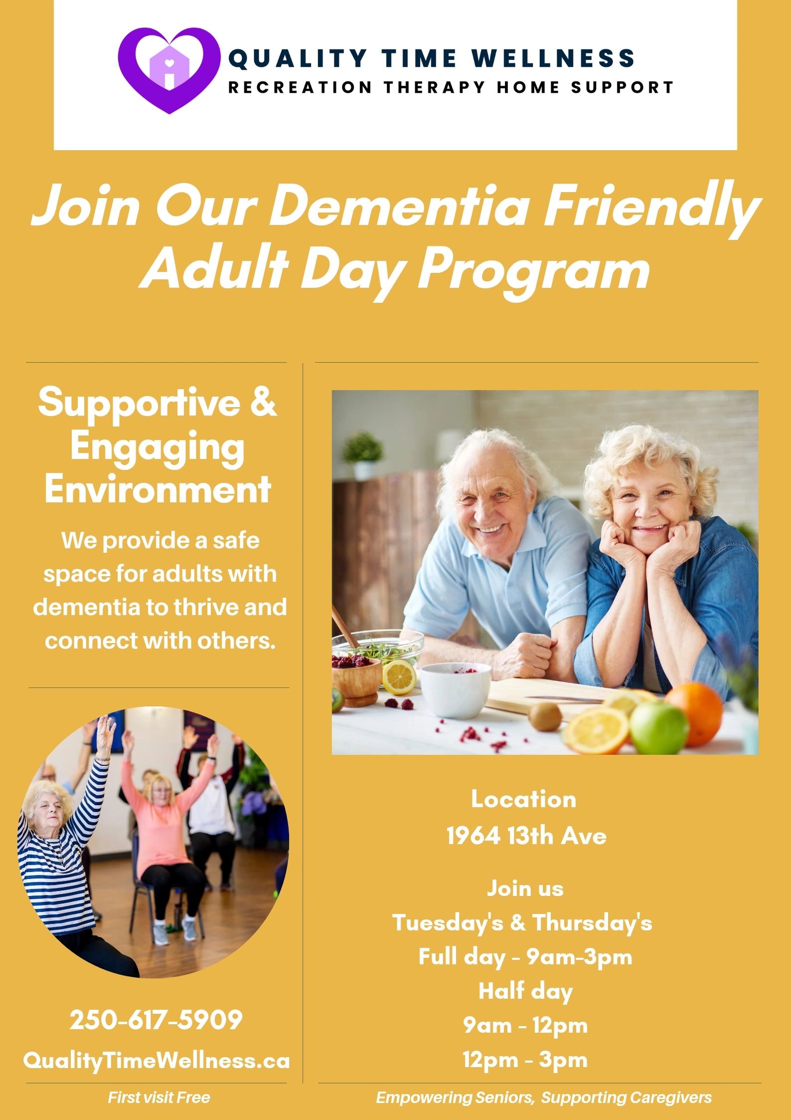 Discover a new level of wellness with our team. We offer a safe and stimulating environment for your loved one living with Dementia. Our qualified and compassionate staff are dedicated to providing meaningful Recreation Activities and peaceful respite for the caregivers.